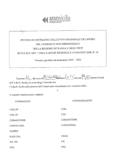 Sottoscritta l’ipotesi di contratto collettivo regionale integrativo concernente l’attivazione di benefici di natura assistenziale in favore dei dipendenti della Regione siciliana. Una parte delle risorse è destinato al programma assistenziale per il personale dell’Amministrazione regionale siciliana in servizio o in quiescenza (borse di studio, assegni di lutto, natalità e nuzialità, sussidi).