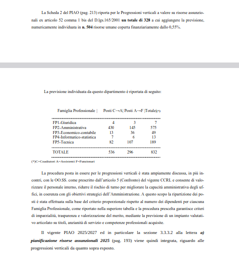 Ecco, in sintesi, i punti principali previsti nella bozza per la modifica ed integrazione del PIAO 2025/2027.