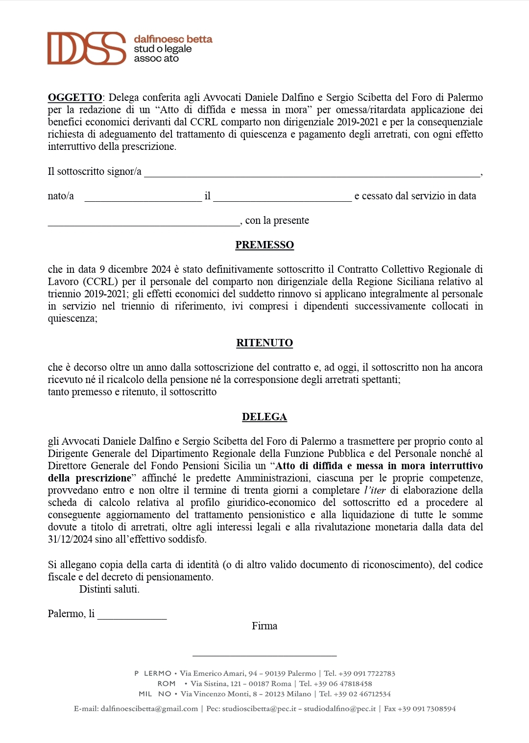 Si informano tutti i pensionati regionali che i legali del COBAS/CODIR hanno predisposto la DIFFIDA E MESSA IN MORA per l’omessa/ritardata applicazione dei benefici economici derivanti dal CCRL (comparto non dirigenziale e dirigenza) per il triennio 2019-2021, definitivamente sottoscritto il 9 dicembre 2024.